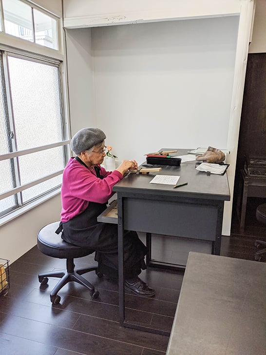 さて、バングルを制作するだがしやさんのおばあちゃん店長。階段を上り二階へ向かいます。(足元が危ぶまれるがどうにかクリア)