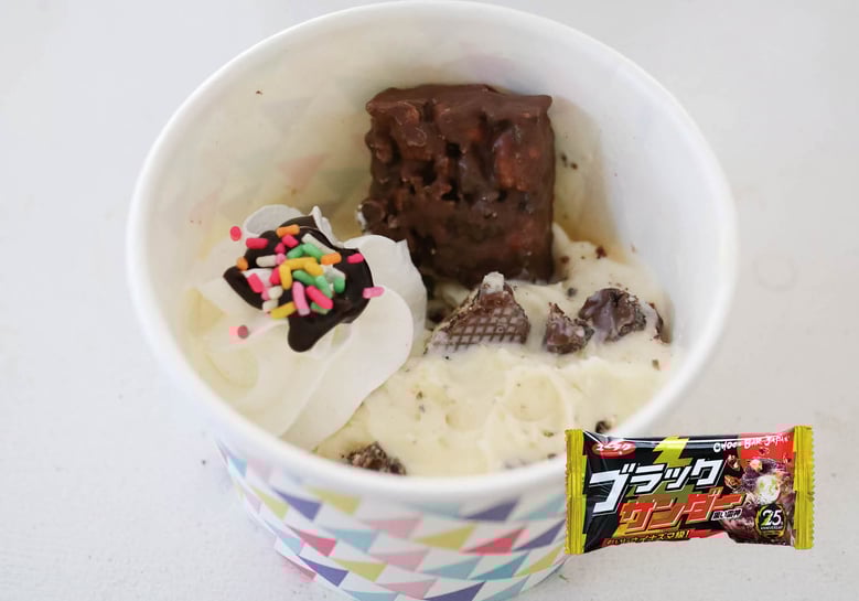 こちらはおにぎりせんべい×バニラアイスで、甘じょっぱい感じが意外と良いです。中の人はこれがとても好き。